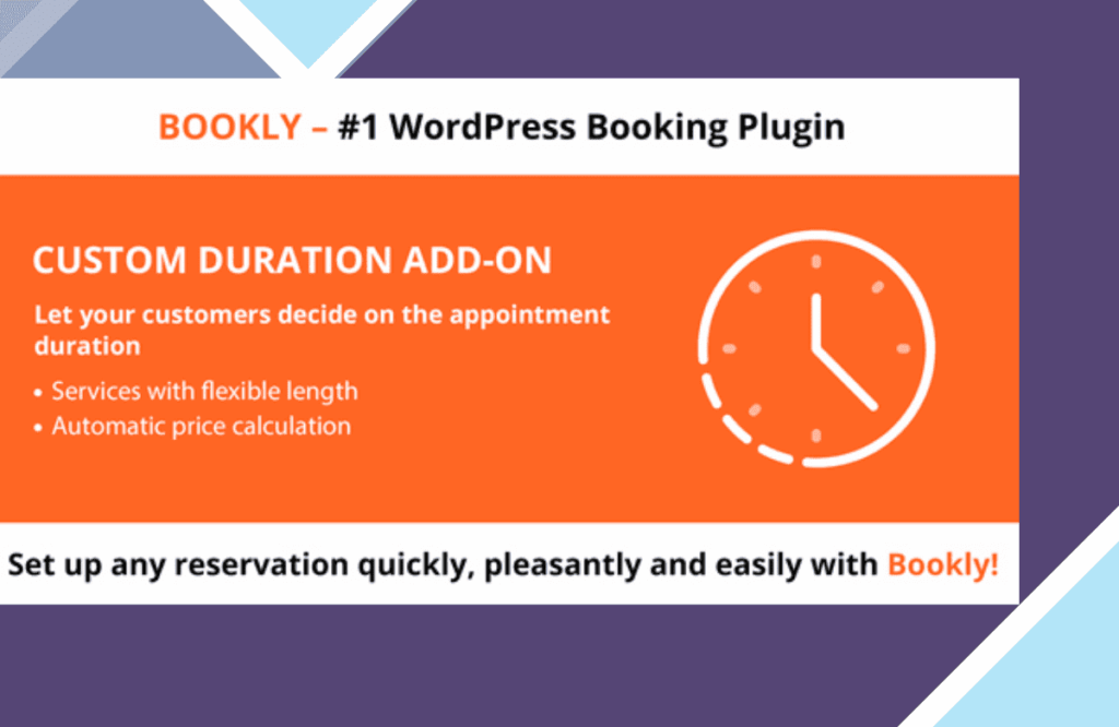 Don’t let the limitations of traditional booking systems hold you back. Take control of your schedule and empower your business with Bookly’s Custom Duration Add-on. Get started today and revolutionize the way you book appointments!