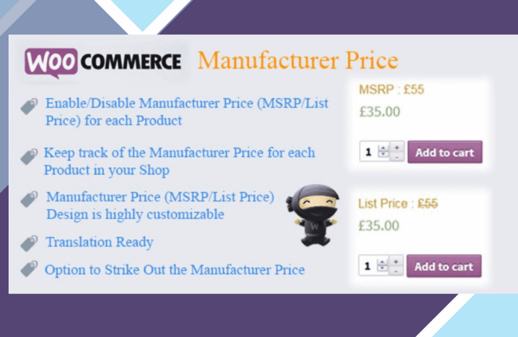 Manufacturer Price is a WooCommerce Extension Plugin that allows you to easily showcase the manufacturer price of your products on your online store. By displaying the MSRP or List Price alongside the selling price, you can attract customers with the promise of a great deal. Not only does this plugin help in enticing buyers, but it also helps you keep track of the manufacturer price for each product. With the ability to store this information directly on the Product Page, you can ensure that your pricing strategy is always up-to-date and accurate. Stand out from your competitors by showcasing transparency and honesty in your pricing, leading to increased trust and credibility with your customers. Start using Manufacturer Price today to enhance your online store and boost sales!